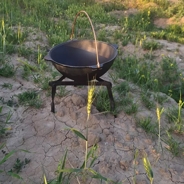 سلام قازن 8لیتری چدنی آببندی شده و آماده استفاده به همراه دسته و سه پایه سرخپوستی برای قرار گرفتن راحت قازن بر روی آتش. در ضمن 3پایه تاشو هست.