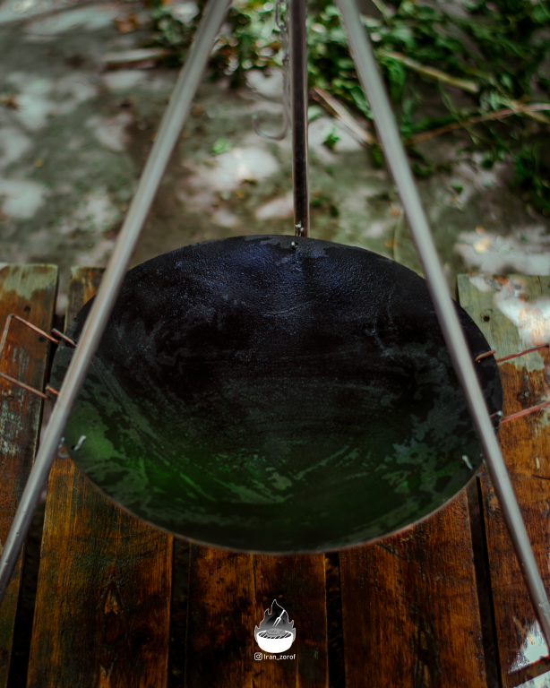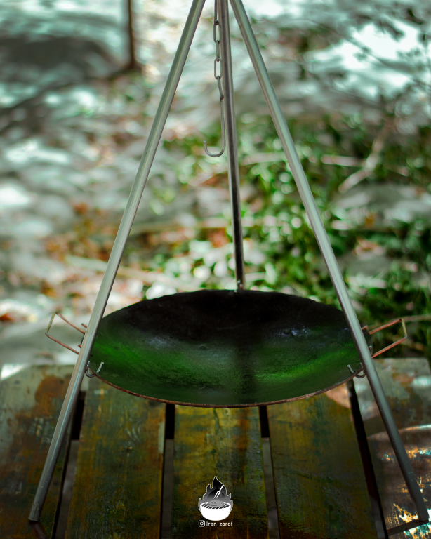 ست سه پایه و ساج چدنی متوسط 44 پخت و پز نان به همراه دسته