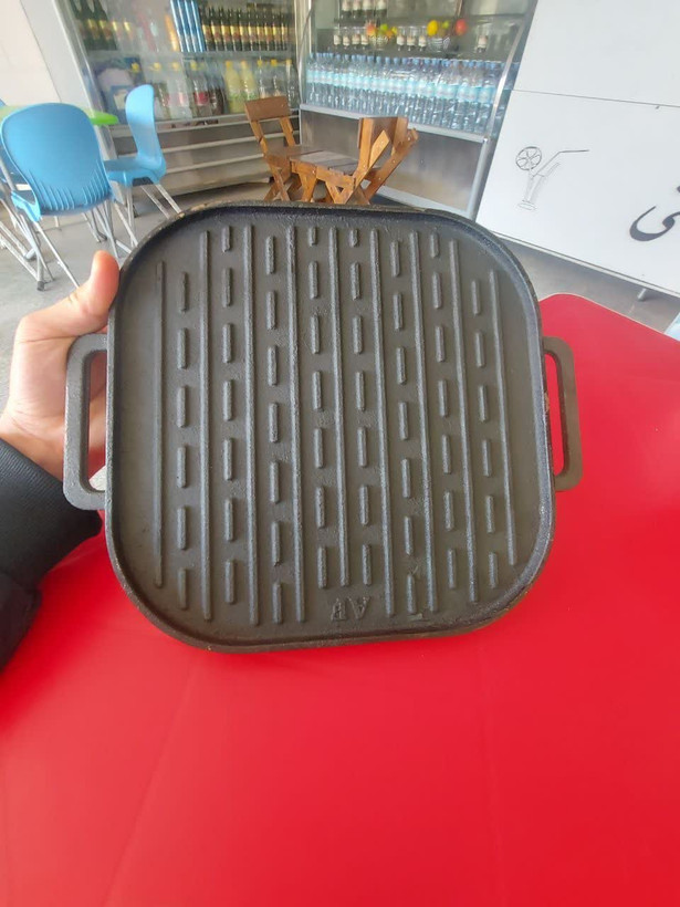 تابه گریل مربعی جنس چدنی، استیک پز چدنی اصل، درست کردن پیتزا، استیک و ...